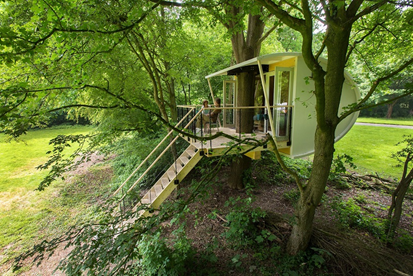 Wie heeft er vroeger niet gedroomd van een boomhut? In Lelystad zijn er op zo’n vier meter hoogte een aantal design boomhutten gebouwd door middel van een uniek ophangsysteem. Zo is er een Family boomhut en een Suite boomhut. De Suite boomhut is voorzien van alle luxe die je nodig hebt om je even te begeven in een wel heel bijzonder hotel. Het ruime balkon laat je genieten van de heerlijke rust om je heen.